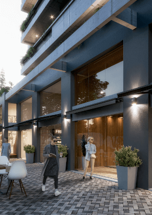 Construcción de complejo formado por 6 locales comerciales, 8 oficinas y departamentos 2 ambientes en primer piso y 40 departamentos 1, 2 y 3 ambientes del 2 al 6to piso. Terraza para uso del condominio, cochera cubiertas y descubiertas.