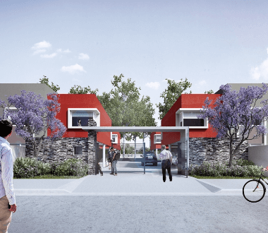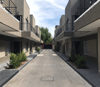 20 departamentos 2 ambientes, unidades con patio y unidades con terraza individual.